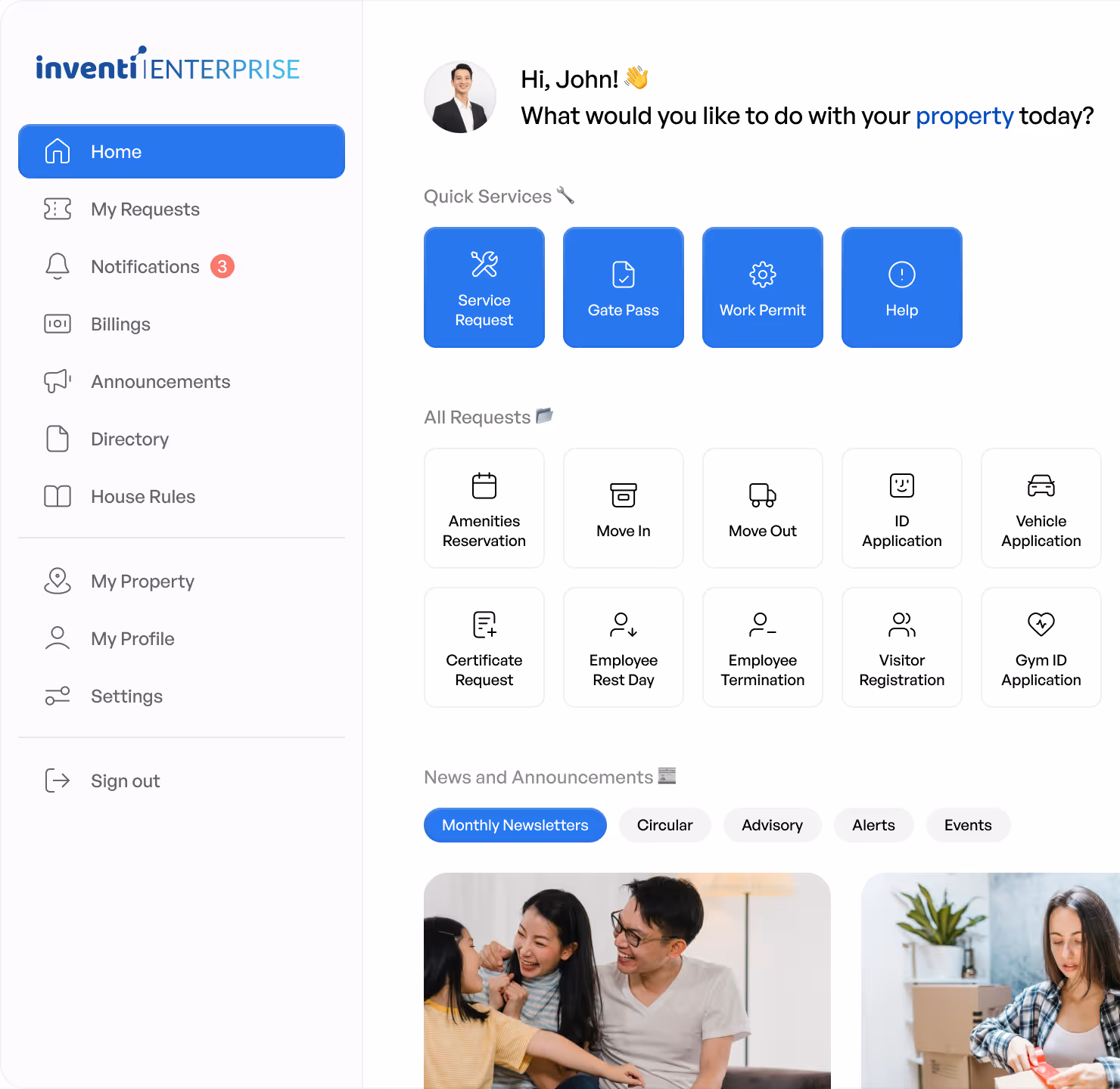 Empower tenants to file requests, reserve amenities and settle payments any time, any where. The built-in community features and the tenant portal makes life simpler, smoother and more convenient.